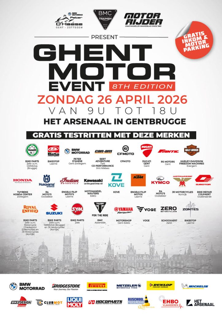 De volgende editie van Ghent Motor Event knalt op zondag 26 april 2026! Verwacht dikke motoren, knallende demo’s en de vetste merken. Dit wordt hét motorevent van het jaar — en jij wil erbij zijn.